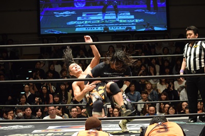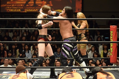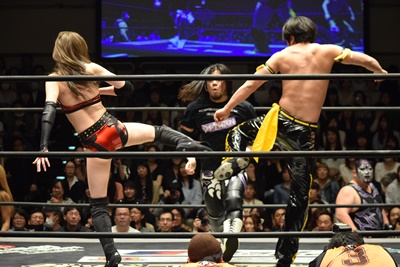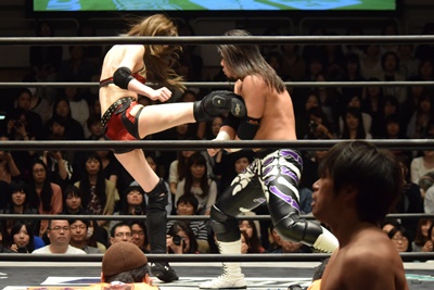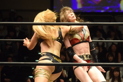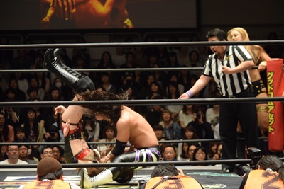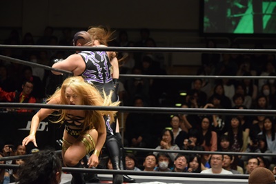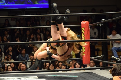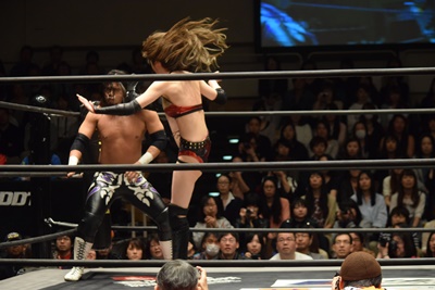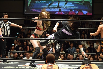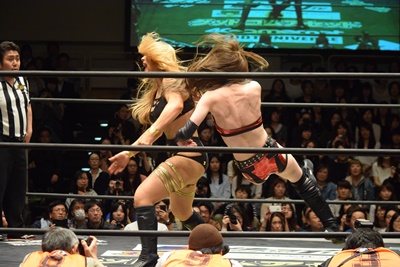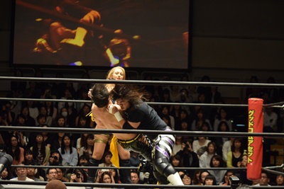 高梨ポーリーにキャッチ延髄(右写真)、KUDOにタッチ。