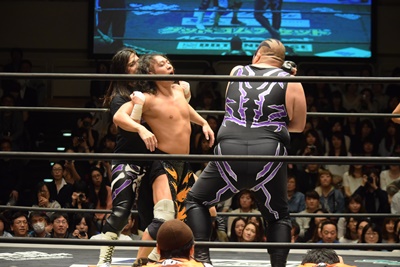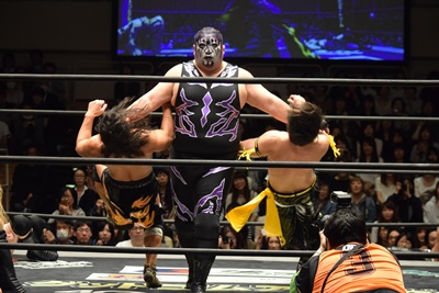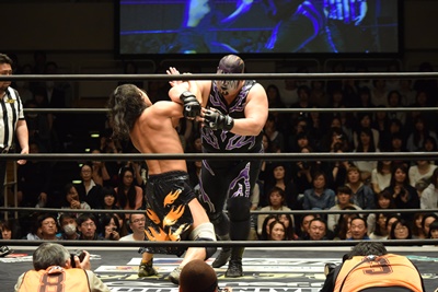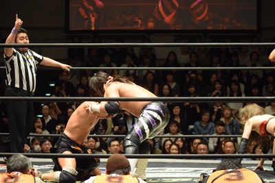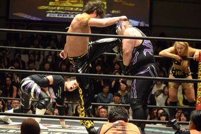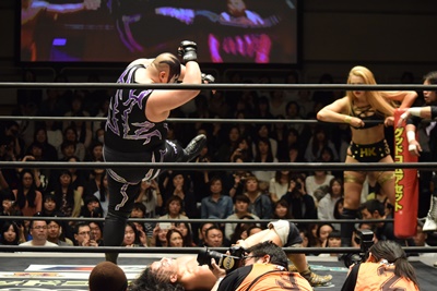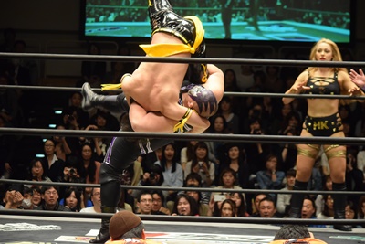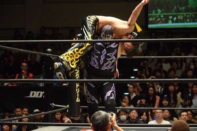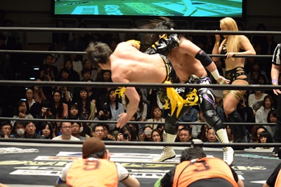 すかさず佐々木がトペ・スイシーダ(右写真)。10分経過。