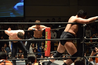 入江が入ってHARASHIMAに串刺しラリアット(右写真)、