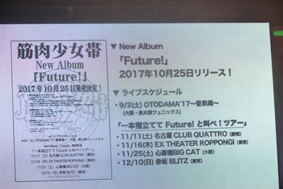 今日から使われる入江の新テーマ「T2」が収録された筋肉少女帯のアルバム「Future!」が10月に発売、と告知(右写真)。