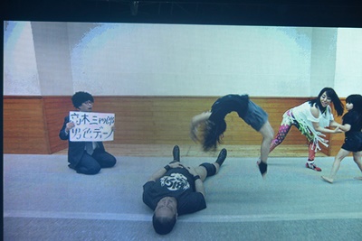 長女の玲ちゃんがその場跳びムーンサルトプレス(左写真)。