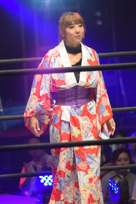 第9入場者の小橋マリカがリングインするなりユカッチにドロップキック(右写真)、
