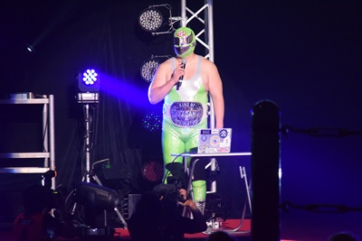 スーパーササダンゴマシンが改めて入場(左写真)。