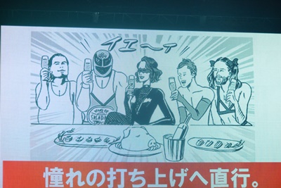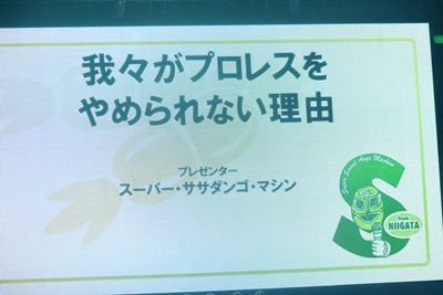 最初にスーパーササダンゴマシンが登場し煽りパワポ披露(右写真)。
