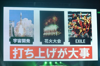 宇宙開発においても花火大会においてもEXILEのライヴにおいても打ち上げが大事(左写真)。