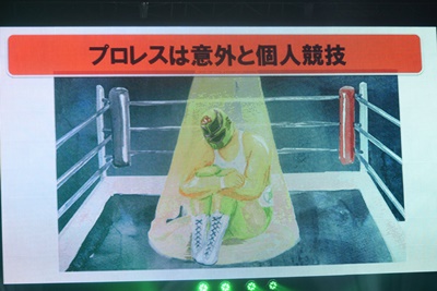 今日のテーマは「我々がプロレスをやめられない理由」(左写真)。