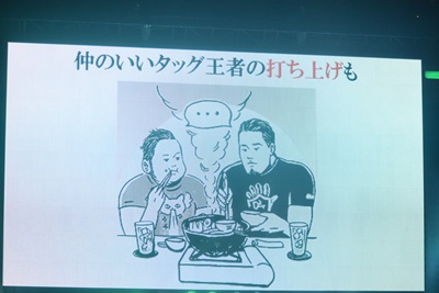 仲のいいタッグ王者の打ち上げも(左写真)