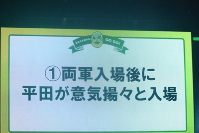 本日の作戦は、@両軍入場後に平田が意気揚々と入場(右写真)