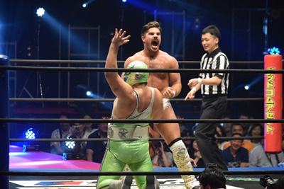 平田大家にコルバタ(左写真)、大鷲にタッチ。