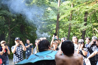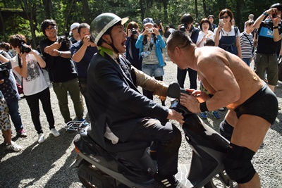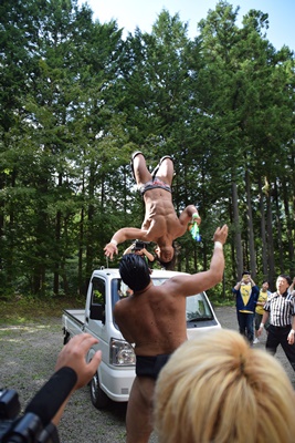 今度は力士がトラックに挑戦(右写真)。
