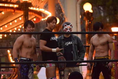 メインイベント 竹下幸之介&HARASHIMA&KUDOwithでいしろう vs 彰人&高尾蒼馬&高梨将弘with美少女化でいしろう