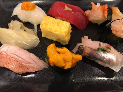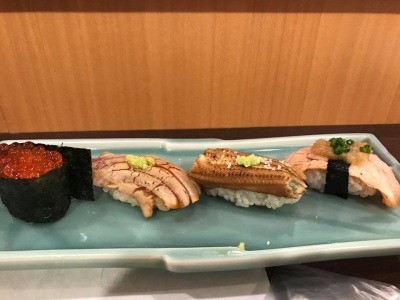 東海道本線で清水に移動、清水駅東口(みなと口)から無料バスでエスパルスドリームプラザに。寿司横丁「回転寿司のぶちゃん」で昼食。金目鯛の寿司茶漬け。うまい。量もちょうどいい。500円。