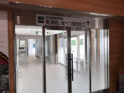12時50分三厩発の津軽線に乗って津軽二股下車。北海道新幹線の奥津軽いまべつ駅へはこのデカい陸橋を渡って乗り換える。