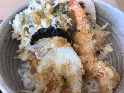 まだ10時半だが昼食は水族館のカフェテリアで「うみもり天丼」。