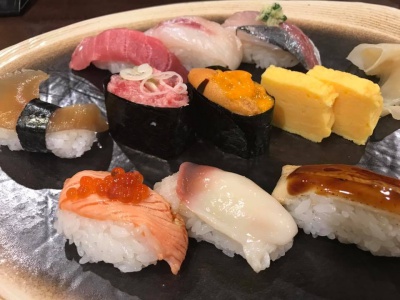 歩いて中野栄駅に戻り、15時56分発の仙石線で仙台に戻る。寿司にするかか牛たんにするか迷ったが、寿司にする。しかし最初っからセットの寿司を頼み、「飲み物はお茶でいいですか?」と聞かれて「はい」と答えちゃったもんだから間が持たない。失敗した。