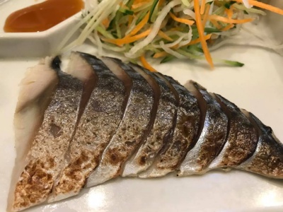 店を替え名掛丁の「東山」という牛たん屋に。まずは炙りしめ鯖。