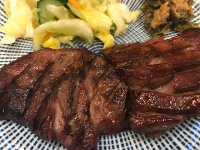 中途半端な時間で「おさない食堂」も「朝市寿司」も閉まってたので駅前の「Pope」という店であわびステーキ丼。15時に東横インチェックイン。