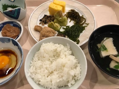 昨夜駅からホテルまで歩く途中に朝飯を食えそうな店が見当たらなかった(というかセブンイレブン以外のいかなる店も見当たらなかった)のでホテルで朝食。