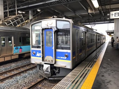 8時53分発の青い森鉄道に乗り換え。IGRいわて銀河鉄道直通盛岡行なので車両はIGRのもの。