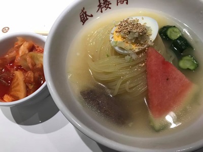 盛岡には10時49分着。ガラガラをコインロッカーに入れて駅向かいの盛楼閣に。11時開店なのにもう満席。あまり腹減ってないので冷麺(辛味別)だけにしといた。1000円。