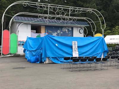 あ、あった。見つけてしまうと逆に時間が1時間ほど余った。しかし乗り物に乗る気はないし、食べ物も食べる気にはならん。DDTと違って選手と気軽にしゃべるってこともないし。待ってたら小雨が降り始めたので建物に避難。