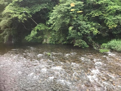 やっぱり温泉の裏には川がないとね。雨で増水してるけど。