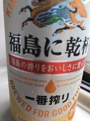 福島に乾杯。宮城と岩手と青森のも飲んだが、味に違いないような。全部仙台工場生産みたいだし。