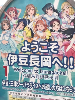 9時49分伊豆長岡で下車。駅にも「ラブライブ!」立て看板。映画の舞台にでもなったのかな?