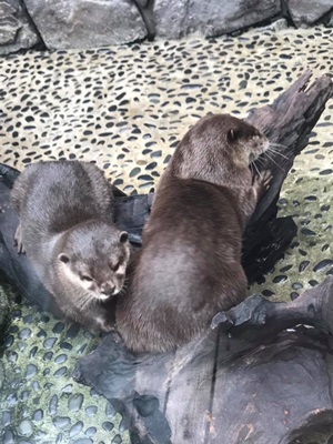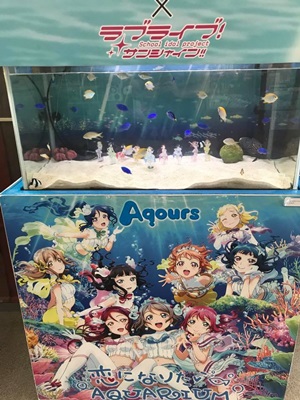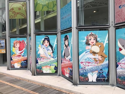 2200円払って入場、室内展示は迂回してカワウソ舎に。壁面も「ラブライブ!」だらけ。