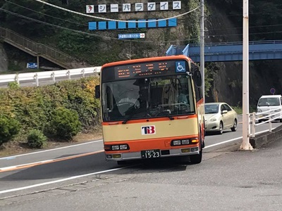 バス停もこうだ。10時15分発のバスで終点の三津シーパラダイスへ。