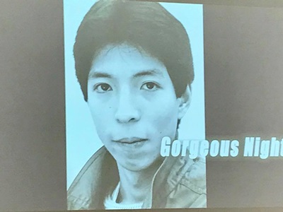 試合は18時開始。いきなりこの写真がスクリーンに。今成製作のVのために松野さんが送った写真のひとつのようだ。ちょっと竹下に似てる?