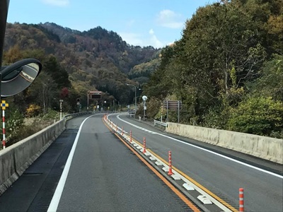 休憩終わりで運転手に言って空席に移動。やっと楽になった。会津辺りは紅葉で景色もきれい。「1/6の夢旅人」「1/6の夢旅人2002」をリピートで聞いて「旅」感を出す。