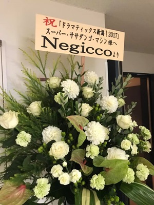 さすがスーパーササダンゴマシン、「八千代ライヴ」「八千代コースター」だけでなくNegiccoさんからも花来てた。