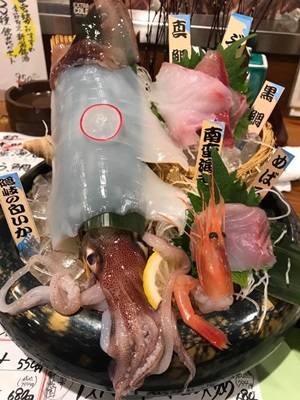 刺し盛り。盛りは派手だが1人前990円なのでイカ以外は一切れずつ。