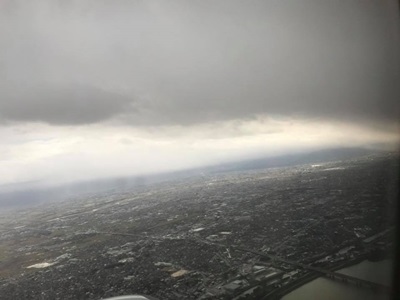 ANAでも機内wi-fiが使えるようになっていた。操作性はJALよりいいが遅くて手続きがなかなか完了せず、40分コースを500マイルで購入したけど実質20分使えたかどうか。富山に近づくと厚い雲。