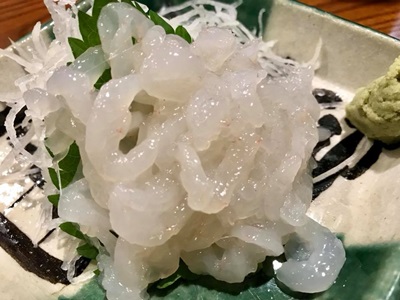 21時からで予約していたが20時半でも座れた。自分の直前に入ろうとしたカップルは「今いっぱい」と断られ、その後来た一人客も断られていた。予約しといてよかった。まずは白エビ刺し。