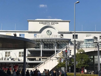 10時5分のバスで熊本駅に。途中から駅メモで市電の駅を取りまくる。