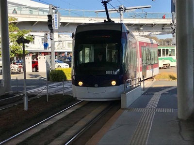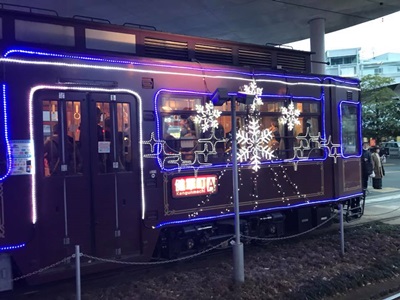市電で熊本駅前に戻る。クリスマスイルミネーション電車。