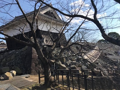 宇土櫓は一見無事のようだが、中の被害はひどいらしい。