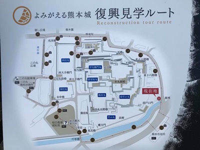 現在の見学ルートはこんな感じ。一周回って時刻は13時。城の隣りの熊本市美術館別館で「水俣2017」という展覧会やってたので、何かの縁だろうということで1200円払って見る。やっぱり知らないことが多いなあ。基本的に政府の方針というものは変わってないし、残念ながら「御用学者」というのは存在した。安倍内閣が急に悪いことやり出したなんてことはない。