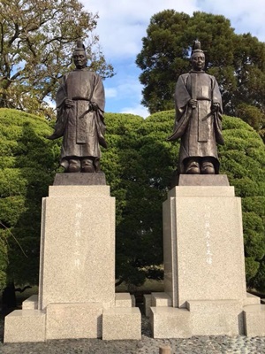 肥後細川氏初代・忠興とと二代・忠利の像。