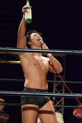 試合は18時開始。良くも悪くも梅田公太の凱旋興行。悪くも、というのは自分の周りの客がほぼ梅田応援団で、それはいいけど他の試合に興味なさ過ぎ。後ろの女子中学生は人が大声で応援してると笑うし、自分らは選手の名前間違えて大声で呼ぶし。ガキだから相手にはしないが。