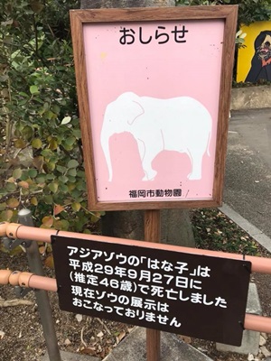 バスで福岡市動物園に。正門が改築中でわかりづらく、そのせいか日曜の朝でもガラガラ。さらにアジアゾウの「はな子」が9月に死んだらしい。
