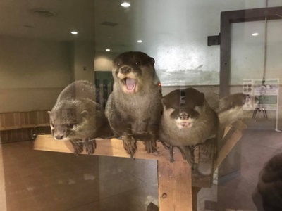 コツメカワウソ舎に。広い展示スペースに3頭、寝室に4頭。こっちはふく太とリラとここ2年で産まれた子供かな?全部で8頭いるうち「げんた」のみ別(展示なし?)らしい。家族とトラブルか?