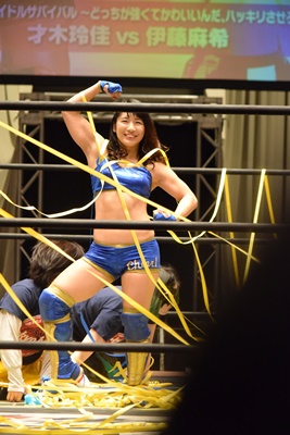伊藤逆エビ固め(左写真)、才木ロープ。
