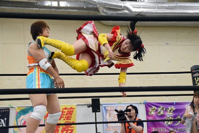 伊藤ちゃんが優宇をスクールボーイ(右写真)、カウント2。