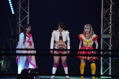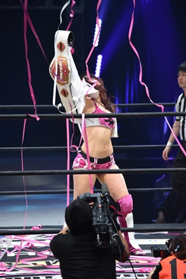 山下がプリンセス・オブ・プリンセスのベルトを掲げる(右写真)。