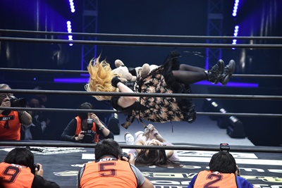 Xファクターで叩き付ける(右写真)。世志琥様にタッチ。