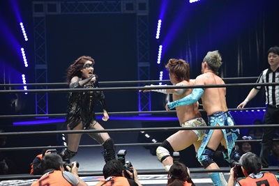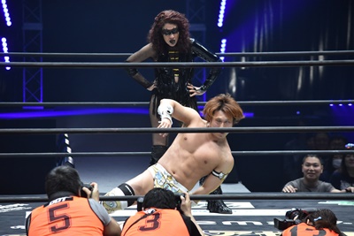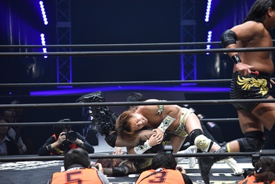 LiLiCoが平田にキャメルクラッチ、大石は大鷲にコブラツイスト(右写真)。