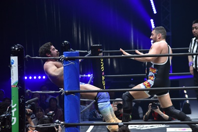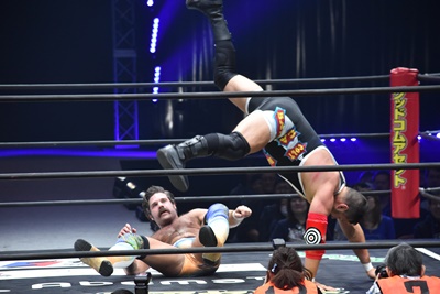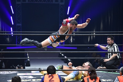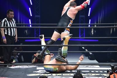 モンゴリアンチョップ(右写真)でライアンを突き落とし、